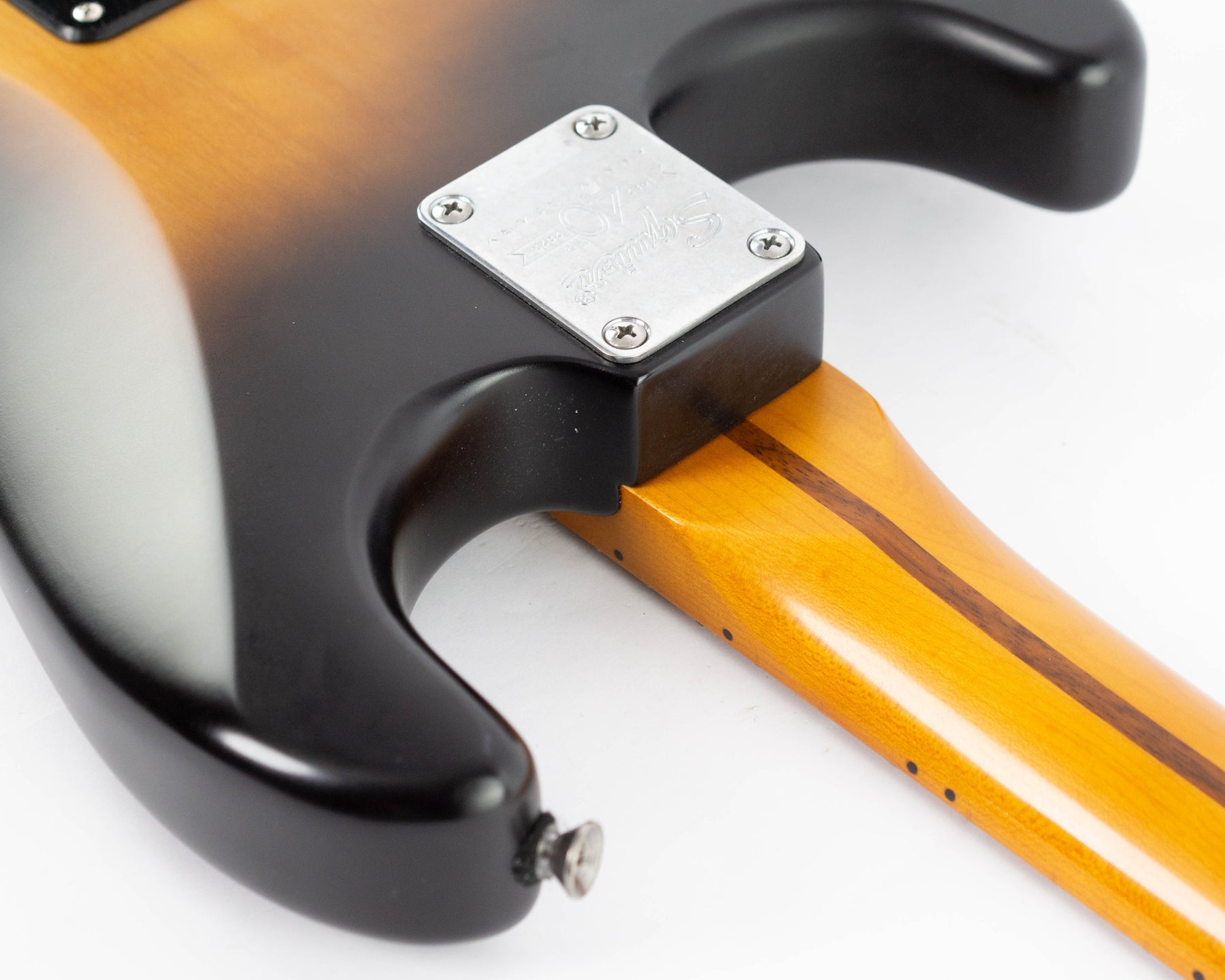 Squier 40th Anniversary Vintage Edition Stratocaster from 2022 in the Satin Wide 2-Colour Sunburst finish.