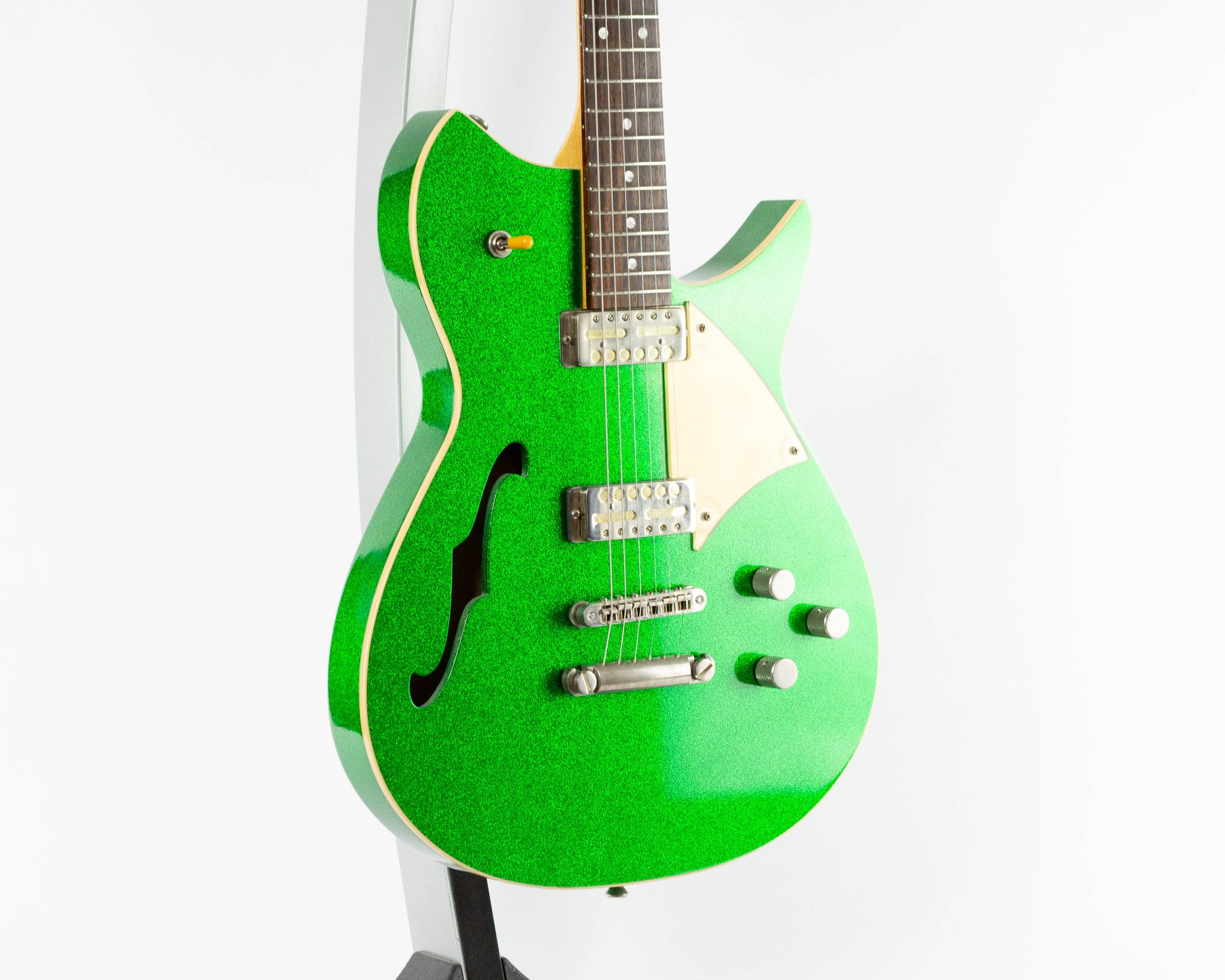 Fano Alt De Facto RB6 Thinline from 2023 in the Candy Green Sparkle Light Distress finish. Just a wonderful guitar built by Wes McClave.
