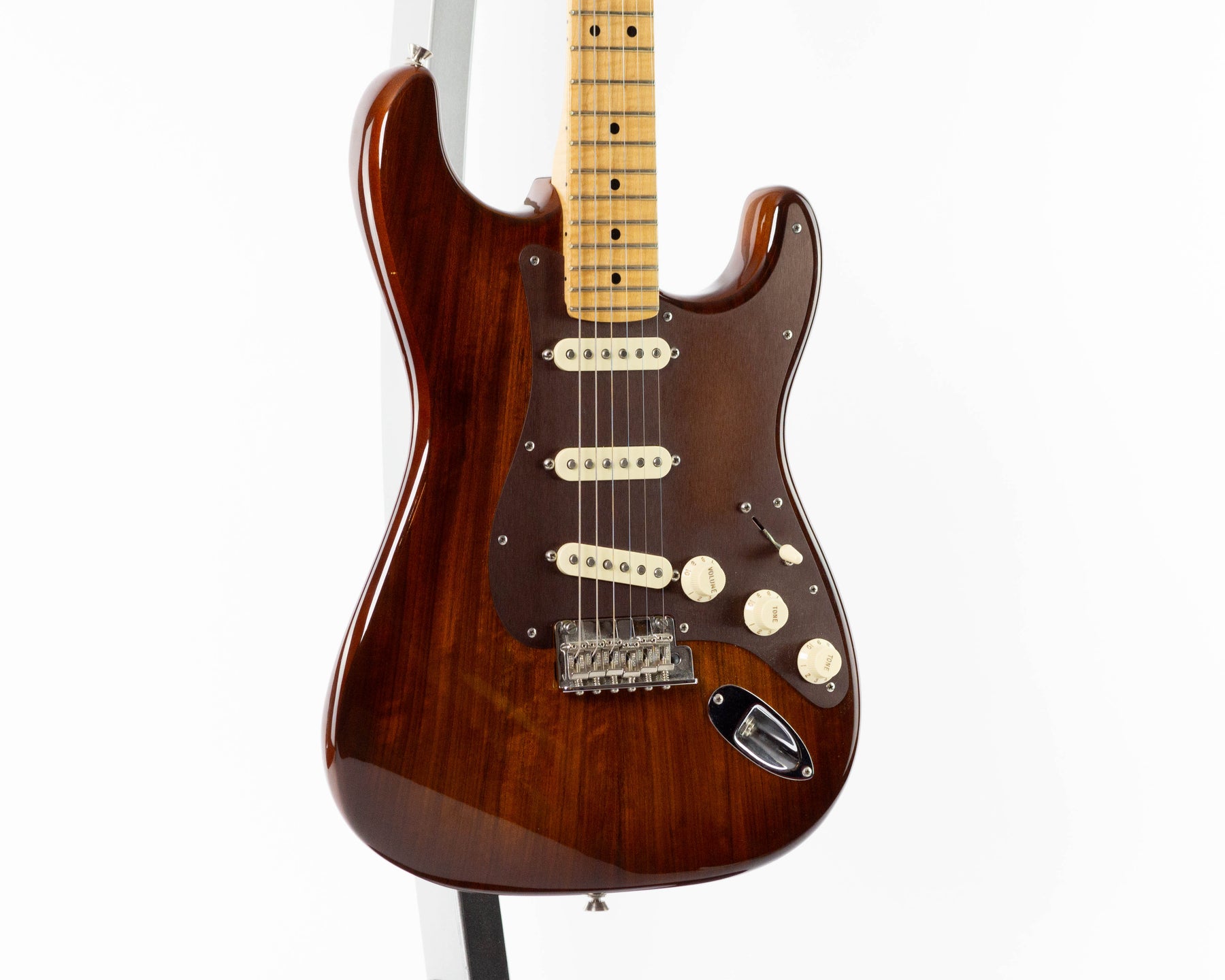 Fender Limited Edition Exotic Collection Shedua Top Stratocaster from 2017 in the Shaded Edge Burst finish.